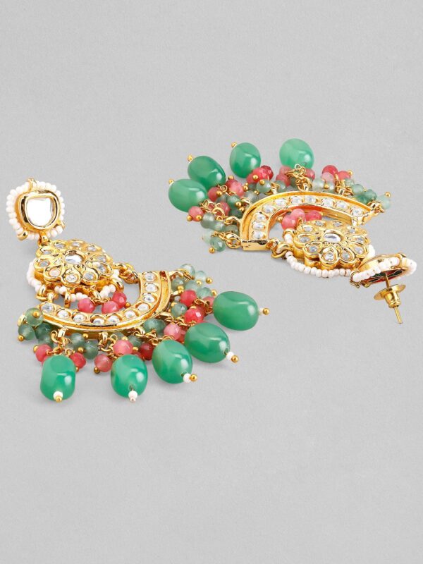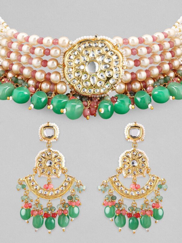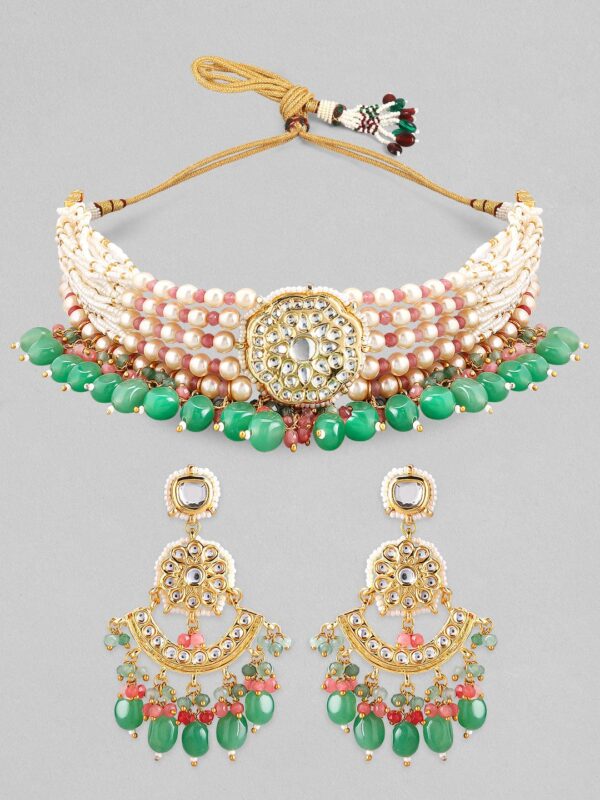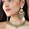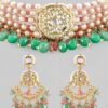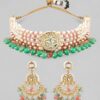 Luxury Gold Plated Green & Red Beaded Kundan Necklace Set