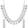 It’s a jewellery set fit for the queens! Exude the royal vibe with this stone studded jewellery set. Consisting of a necklace, matching earrings, this necklace set is crafted from gold-plated brass, stones and beads.